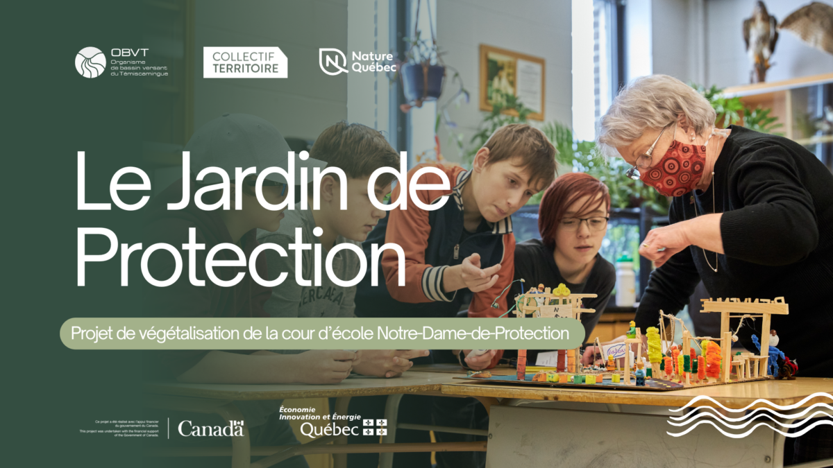 La cour d’école peut-elle être plus qu’un simple espace minéralisé ? C’est la question qui a inspiré le Jardin de Protection, un projet collectif porté par l’Organisme de bassin versant du Témiscamingue (OBVT) et Nature Québec, en collaboration avec le Collectif Territoire et de nombreux partenaires.