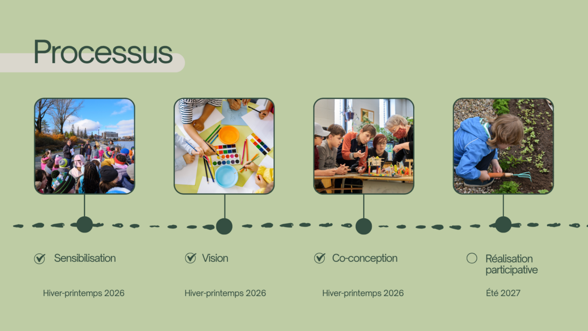 Un comité d’aménagement composé d’enseignantes, de parents, de jeunes et d’experts en aménagement accompagnera la transformation concrète du jardin.